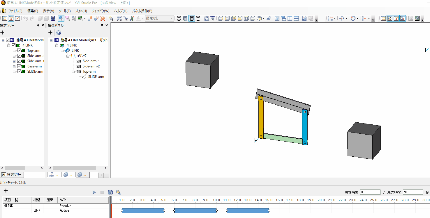 - 動作設定前:4_4節リンクモデル.xv2 ※クリックするとダウンロードできます