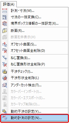 確認が終了したら、メニューバーから、動的計測の設定ダイアログを表示、 ボタンをクリックする
