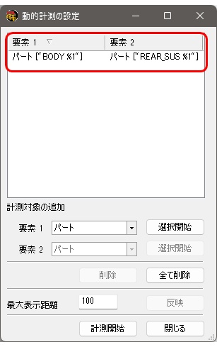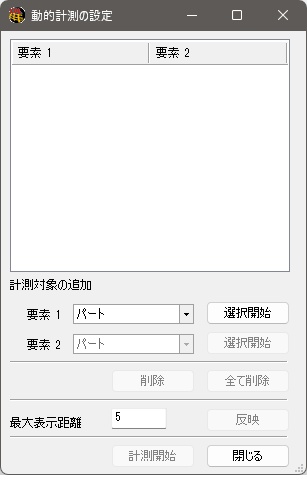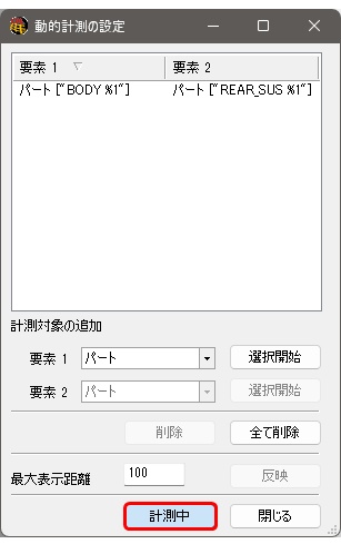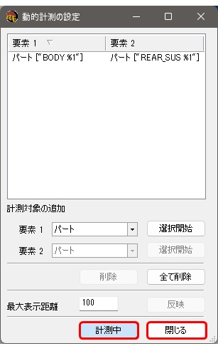 - 動的計測の設定ダイアログ内の閉じるボタンをクリックする