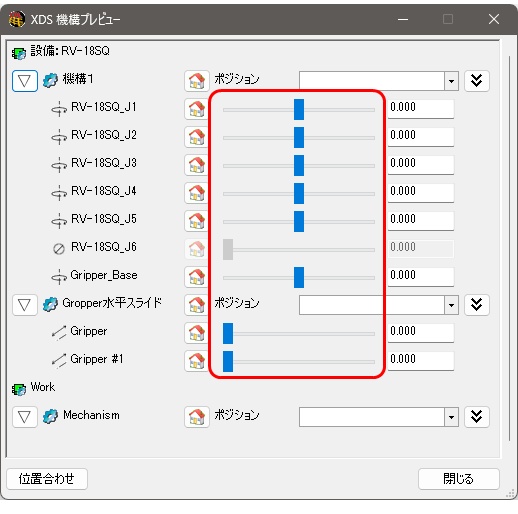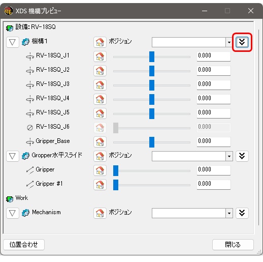 XDS 機構ツリーの機構や軸の動作は機構プレビューで確認できます。
