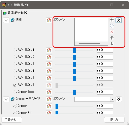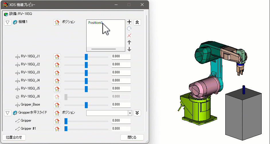 ポジションは複数登録できます。機構や軸を動かし、その状態をポジションに登録します。