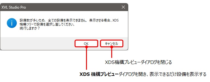 XDS 機構プレビューダイアログが表示されます。 - XDS 機構プレビューダイアログで、ポジションを登録したい設備の