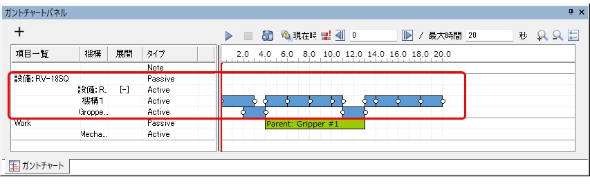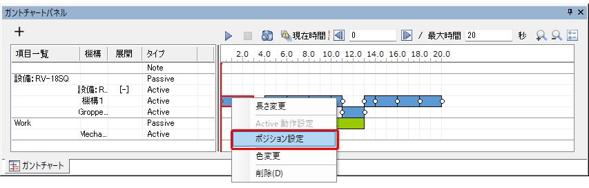 機構プレビューで登録したポジションをガントチャートのポジション設定で呼び出すことができます。