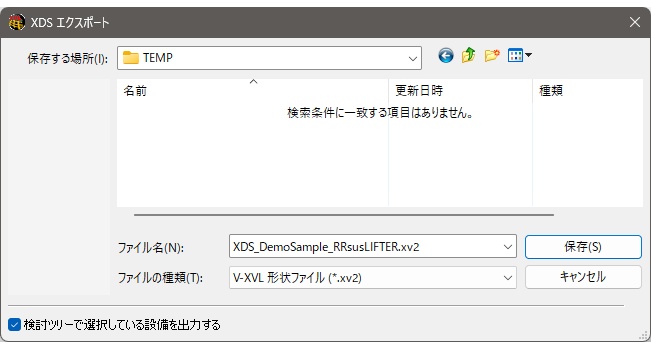 を選択するXDS エクスポートダイアログが表示されます。 - 検討ツリーで選択している設備を出力するにチェックを入れる