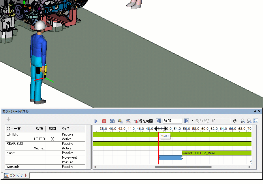 ガントチャートに人体モデルが追加されます。
