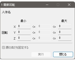 関節回転ダイアログ内の実行、閉じるボタンをクリックする