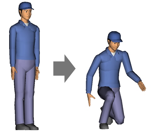 →開始姿勢、終了姿勢を定義することで、作業員の姿勢をアニメーションで確認できます。