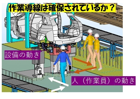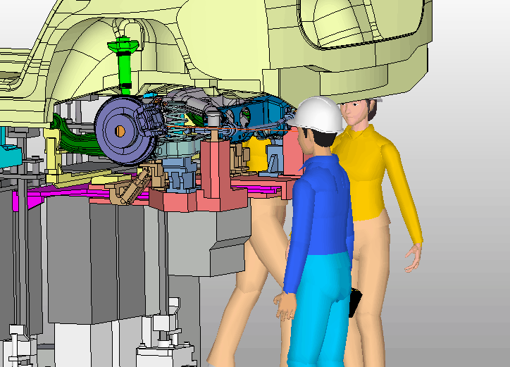 設備の動きに連動して人体モデルの立ち位置を動かします。