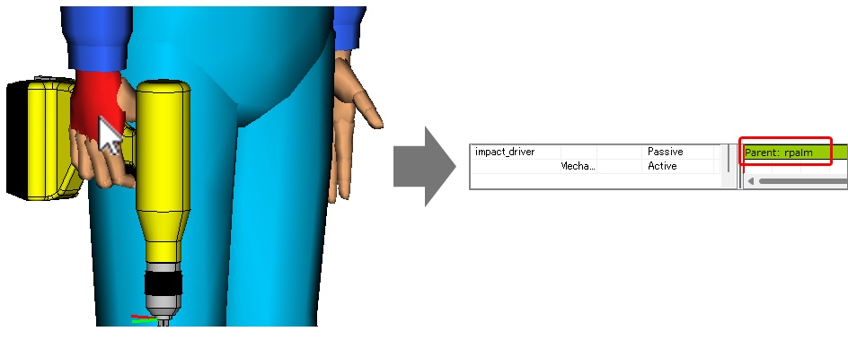 - Passive バーの親に 3D ビューから右手(または左手)を選択する