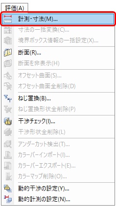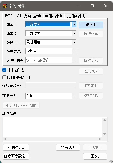 - メニューバーから、計測・寸法ダイアログが表示されます。