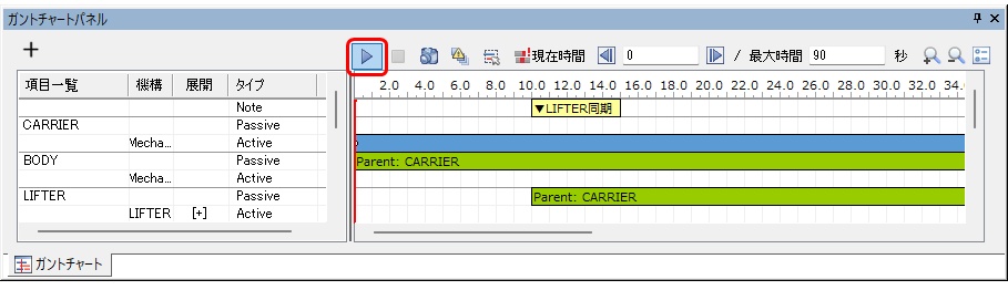 アニメーションが再生されます。対象パート同士が最大表示距離内に入ると3D ビューに寸法が 表示されます。 - 確認が終了したら、メニューバーから、動的計測の設定ダイアログを表示、 ボタンをクリックする