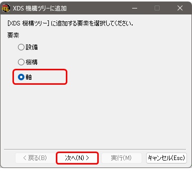 XDS 機構ツリーに追加ダイアログが表示されます。