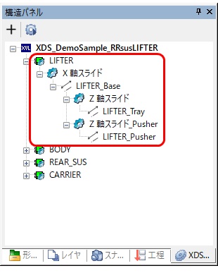 LIFTER を例に複数軸を持つ機構ツリーの作成手順を説明します。