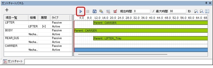 - 3D ビューをわかりやすい視点に変更し、ガントチャートパネルの