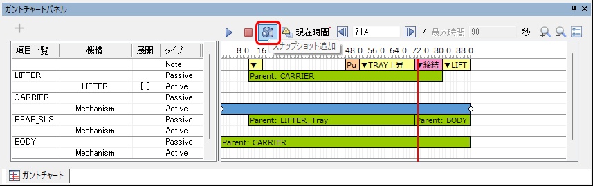 アニメーションを再生し、気になる箇所をスナップショットに登録します。