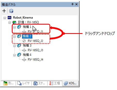 ヒント: ドラッグアンドドロップを利用することで、最初に XDS 機構ツリーを並列で作成し後から親子関係を定義することも可能です。