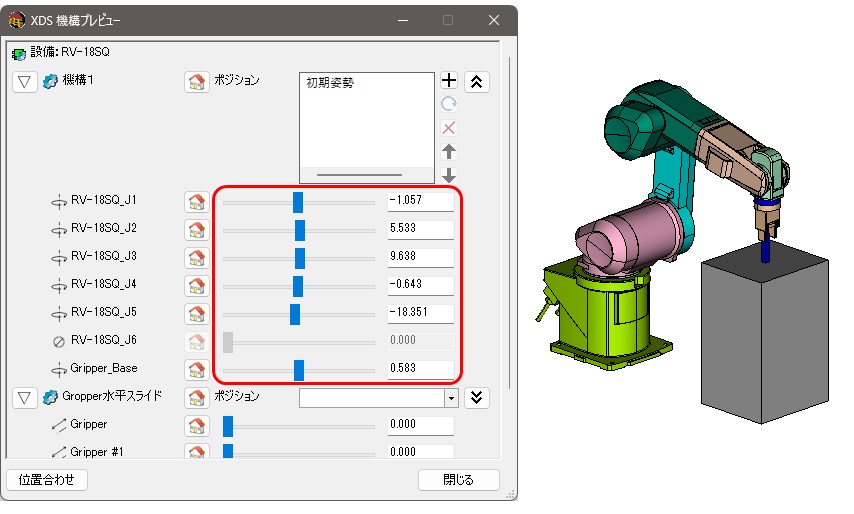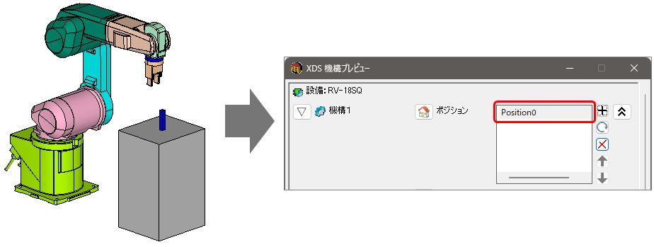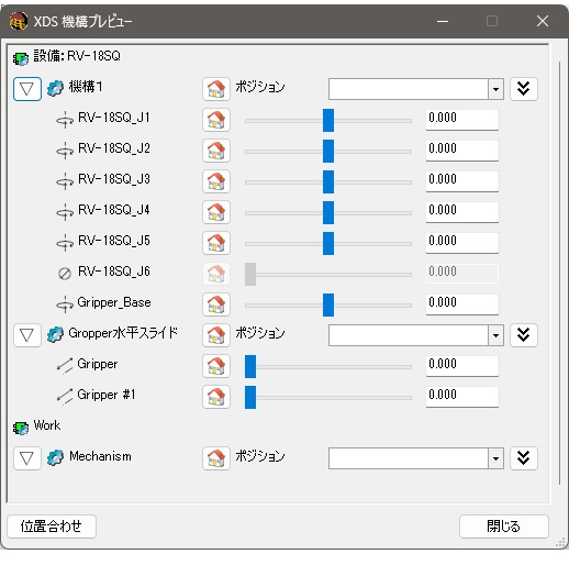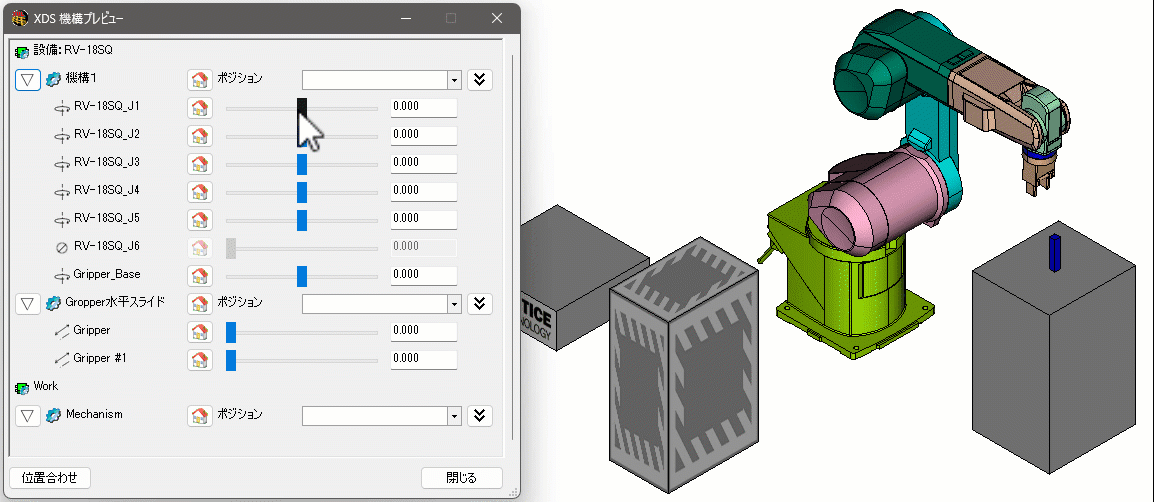 XDS 機構ツリーの機構や軸の動作は機構プレビューで確認できます。