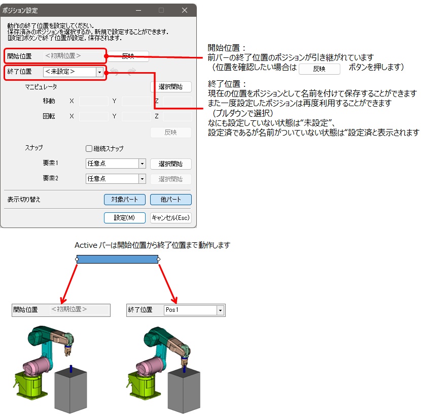 ポジション設定ダイアログ内の終了位置から Active バーのポジションを保存・適用できます。
