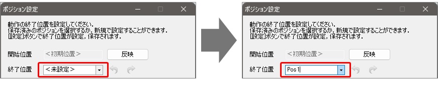 - 終了位置のプルダウンメニューにポジション名称を入力する