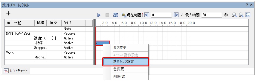 - Active バーを作成し、右クリックメニューのポジション設定を選択する