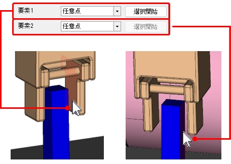 要素 1 が要素 2 に一致するよう軸が移動します。