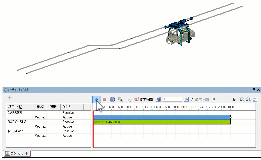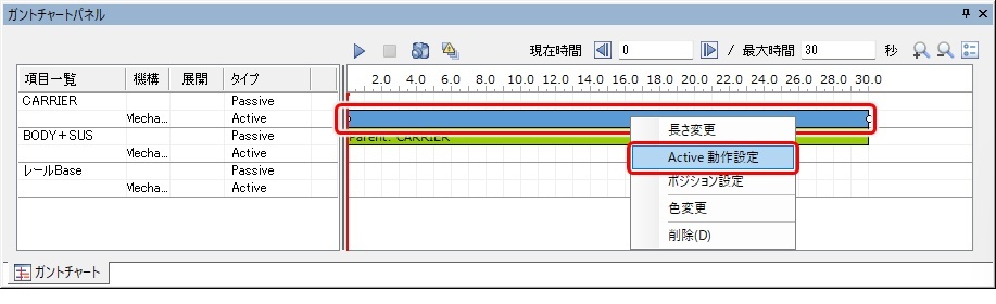 CARRIER の Active バーを選択し、右クリックメニューのActive 動作設定を選択する