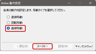 曲線移動にチェックを入れ、次へボタンをクリックする