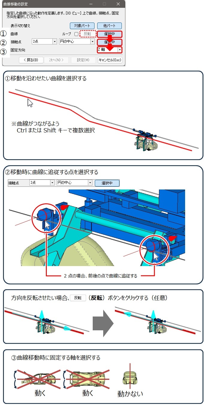 曲線移動の設定を行う