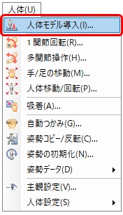 ヒント: 構成ツリーに人体モデルが存在しない場合、メニューバーのから新規追加してください。また事前に初期立ち位置や姿勢を編集してください。