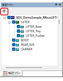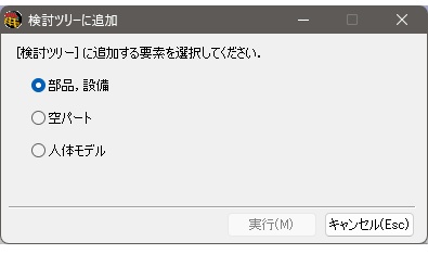 - 検討ツリーに追加したい人体モデルを構成ツリーで選択し、検討ツリーに追加ダイアログで人体モデルの追加先を選択する